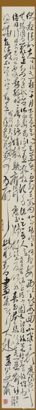 观其书,蝇头小楷出之魏晋,典雅精到;八尺狂草源于颠张醉素,气象博大且法度森严;尤其是章草取法高古,有敦煌残纸,有汉砖汉简,天真烂漫,妙趣横生。观其画,山水奔放洒脱,多有元人意味,其痛快淋漓的笔墨也可见对石涛的传承。