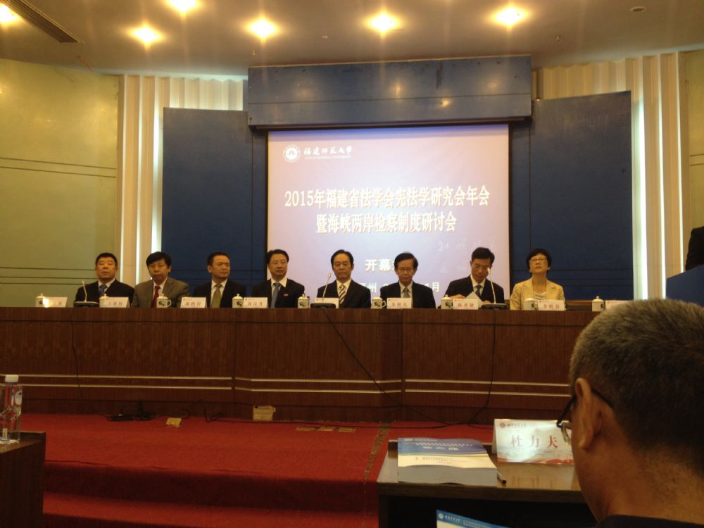2015年福建省法学会宪法学研究会年会暨海峡两岸检察制度研讨会于2015年11月21日在福建师范大学召开。此次年会由福建省宪法学研究会、福建省人民检察院、厦门大学法学院海峡两岸检察制度研究中心、福建师范大学法学院共同主办。