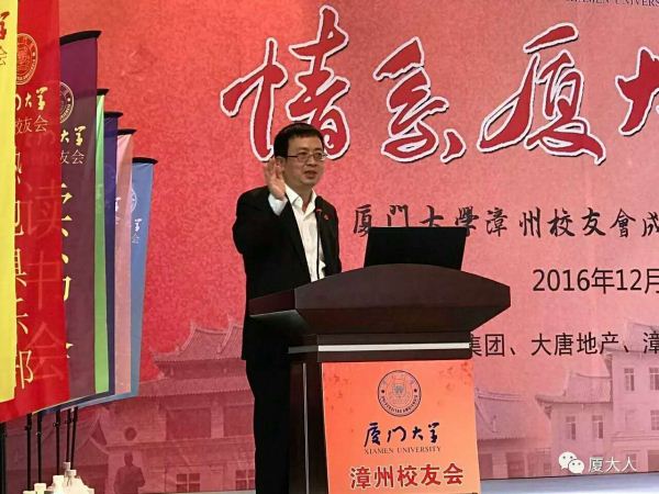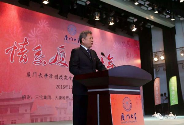 2016年12月18日上午,厦门大学漳州校友会在漳州市隆重举行以“情系厦大八十年”为主题的漳州校友会成立八十周年庆典活动。党委副书记、纪委书记赖虹凯,副校长、校友总会副理事长詹心丽,产业技术研究院院长卢英华,管理学院教授戴亦一,校友总会副秘书长石慧霞等应邀出席大会。近400名漳州老中青校友欢聚一堂,叙情谊、谋发展。校友、漳州市政协原主席林碧华,校友、漳州市委原常委、秘书长黄耀光,校友、漳州市委原常委、统战部部长游婉玲,校友、漳州市政府原副市长王耀泉,校友、中央电视台海外中心主任杨刚毅以及北京、上海、贵州、厦门、莆田、英国等兄弟校友会代表到会祝贺。
