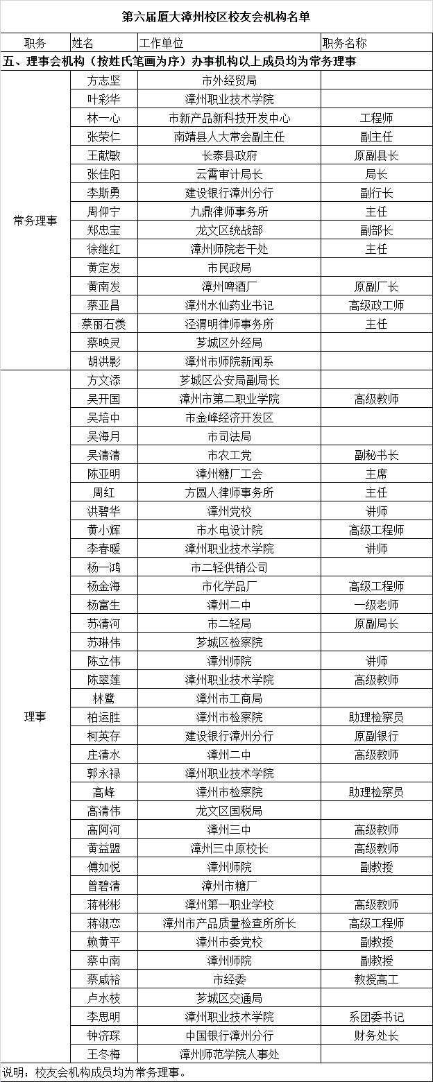第六届厦大漳州校区校友会机构名单-理事会机构